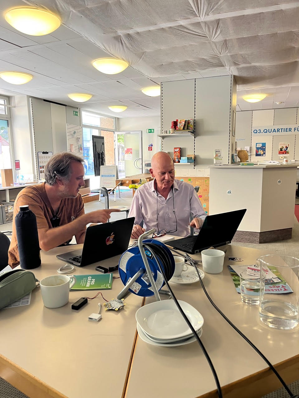 Image: Q3, Traunstein, Germany. Project meeting between Lawrence Martin (Q3) and Iain Shaw (Media Education)